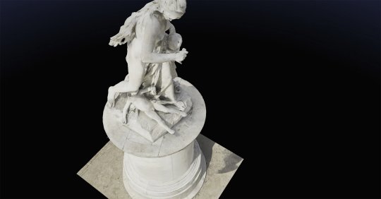 Sculpture de Médée du Jardin des Tuileries, sculptures de Maillol, masque africain Punu et statue chinoise photographiés en 3D.